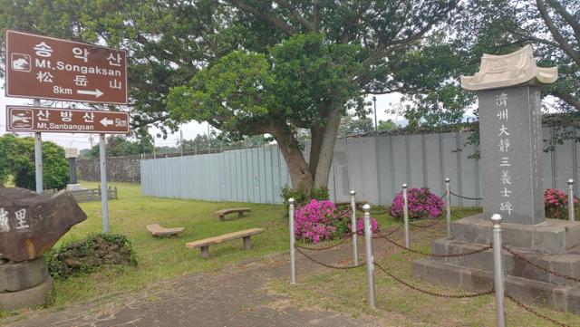 삼의사비는 원래 1961년 대정리 홍살문 거리에 세웠던 것인데 여러 압력과 도로확장 등으로 여기저기 옮겨 다니고 마모되어 1998년 대정청년회가 낡은 비를 묻고 그 위에 새 비를 세운 것이다. 어렵게 찾은 그 비 앞에 서서, 위에서 아래로, 그것도 아주 작은 글씨로 촘촘하게, 써놓아 읽기 쉽지 않는 비문을 읽기 시작하자 온몸에 전율이 느껴졌다.