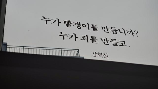 그는 할아버지에게 말한다. “그들의 주장이 틀리다는 이유로 막으면 그들도 우리의 주장이 틀리다며 억압할 것이며, 그러면 우리도 나치사회가 됩니다.” 그렇다. 앞에서 지적했듯이, 자유민주주의의 핵심은 ‘틀린 주장’도 주장할 수 있는 자유를 보장하는 것이다. ‘수상한 집 광보네’를 나서는 나에게 강희철씨의 절규가 들려왔다. 누가 빨갱이를 만드나요.