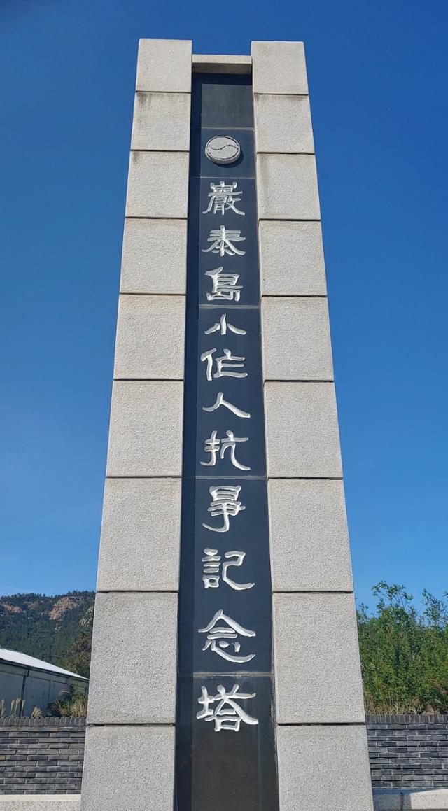 송 선생을 생각하는 사이 암태도에 도착했다. 서해안의 섬인 만큼 당연히 염전도 보였지만 소작분쟁지답게 섬치고는 많은 논이 눈에 뜨였다. 조금 달리니 작은 공원이 나타났다. ‘암태도 소작쟁의 기념공원’이다. 계단을 올라가자 1997년 만든 ‘암태도소작인항쟁기념탑’이 나를 맞았다. 이번 기행으로 많은 곳을 다니며 수많은 기념물을 봤지만 대부분 학살과 패배의 기록들이라 우울하고 답답했는데 이 탑은 흔치 않은 ‘승리의 탑’이라는 점에서 신바람이 났다.
