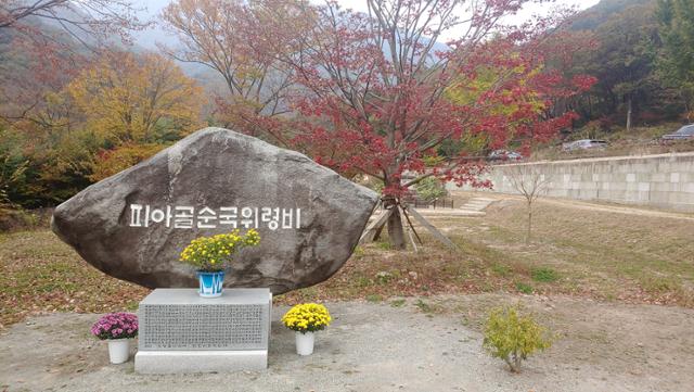 결국 답사를 포기해야 했고 장마가 그친 뒤 다시 찾아갔다. 골짜기를 따라 바위들이 이어지는 빗점골에는 원래 이현상 아지트와 사살지를 알리는 표시판이 있었지만 박근혜 정부 때 철거됐다. 대신 누군가 큰 바위에 ‘이현상바위’라고 새기고 그 앞에 작은 추모돌탑을 만들어 놓았다. 그 앞에 서서 지리산에서 죽어간 빨치산과 토벌대, 그 사이에 끼어 쓰러진 민초들을 위해 추모의 묵념을 했다. 그러자 의병·토벌대·빨치산 등 이곳에서 숨진 모든 이를 위해 피아골 연곡사에 세워진 ‘순국위령비’ 중 한 구절이 가슴 아프게 다가왔다. “조국을 위해 흘렸던 그 많은 피들은 붉은 잎들이 되었는가? 피아골의 단풍은 해마다 붉기만 하다.”