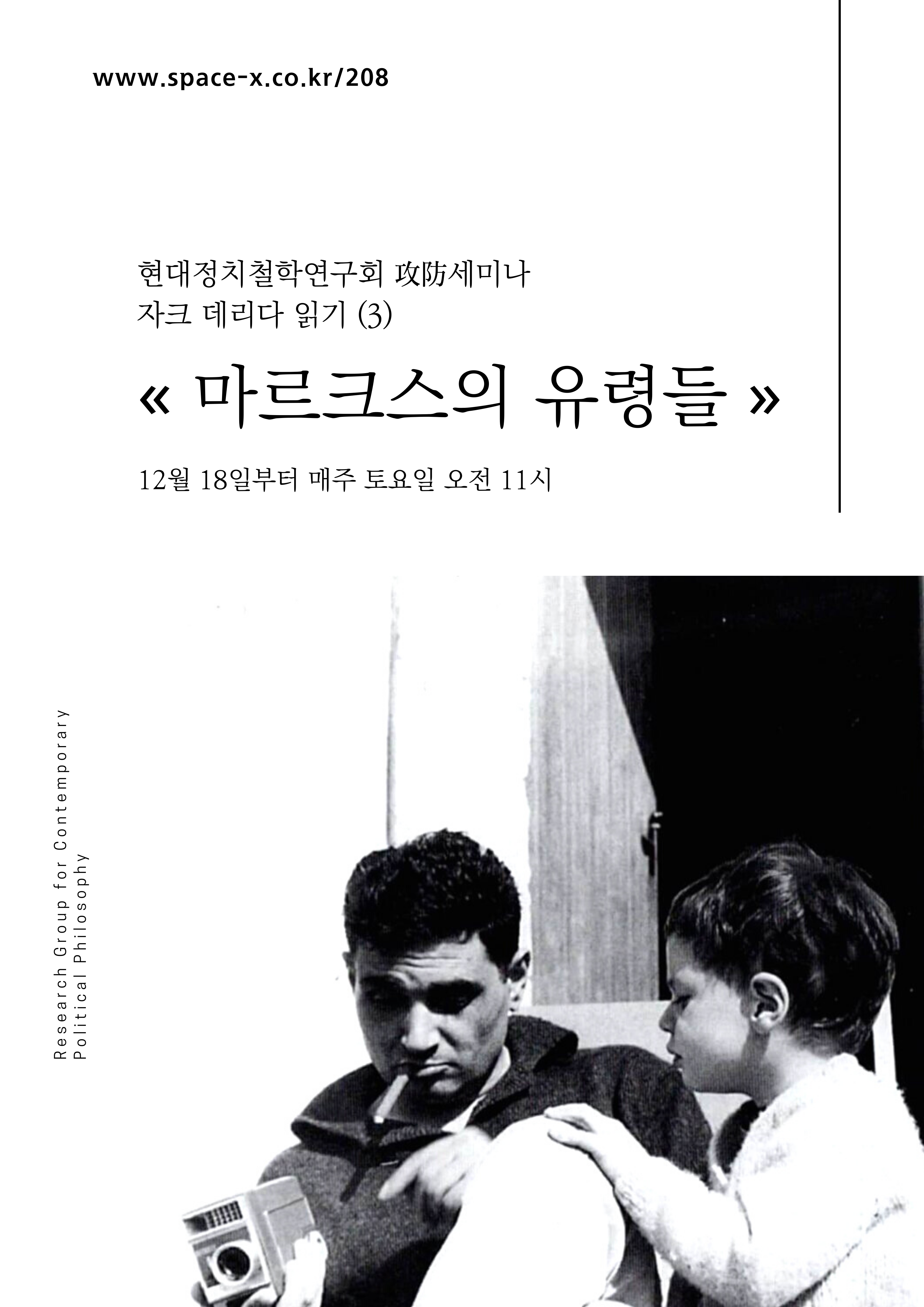 ※ 데리다의 대표적 저작 중의 하나인 『마르크스의 유령들』을 천천히 읽어나가는 시간을 가지고자 합니다. 그린비 출판사 국역본 기준, 한 번에 30쪽 이내로 대략 12-15회 정도 걸릴 것으로 예상하고 있습니다.