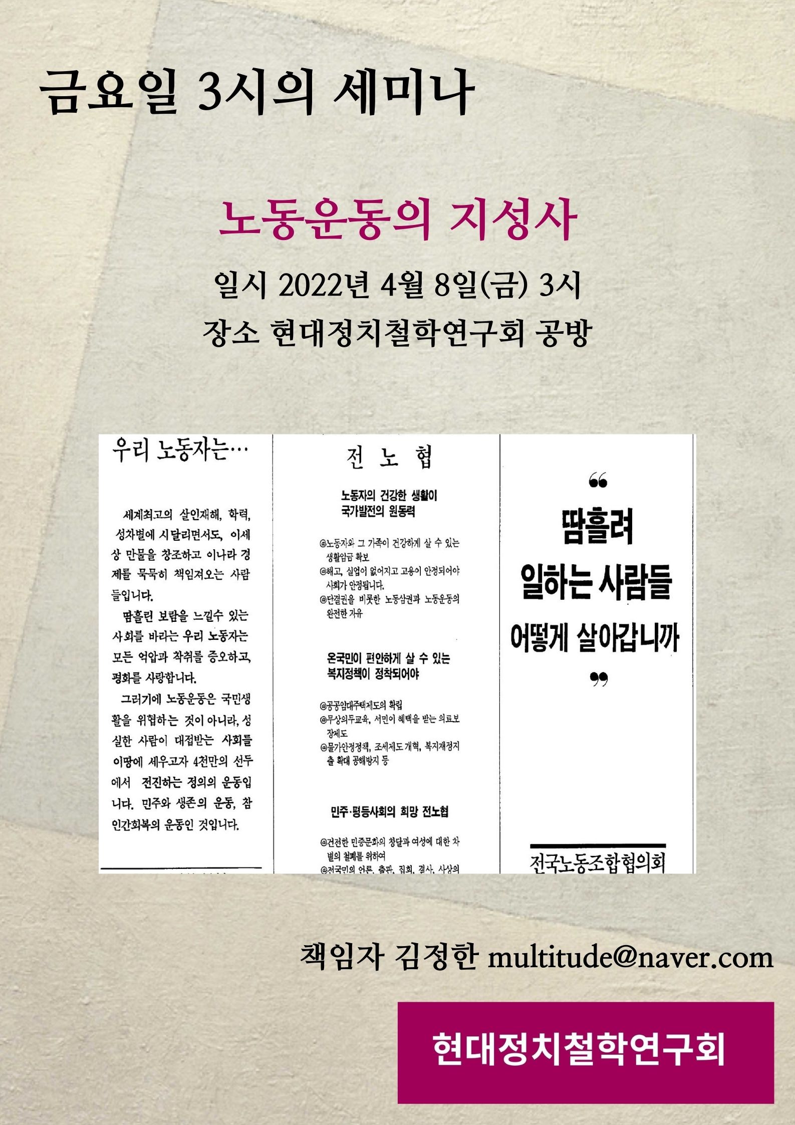 이 세미나는 노동운동과 이론·사상 논쟁을 '지성사'라는 틀로 이해해보려는 시도입니다.
