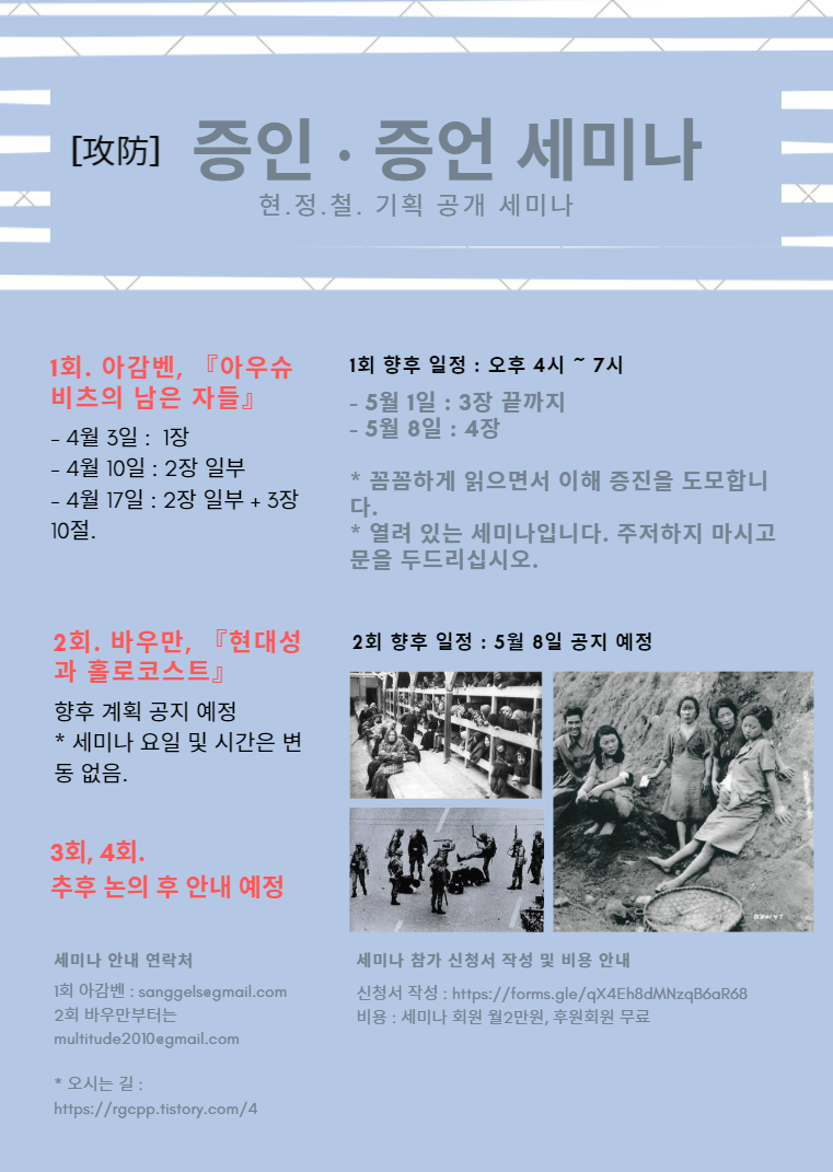 | 전체 세미나 : 증인/증언 기획용 세미나 (0) | 2019.04.15 |