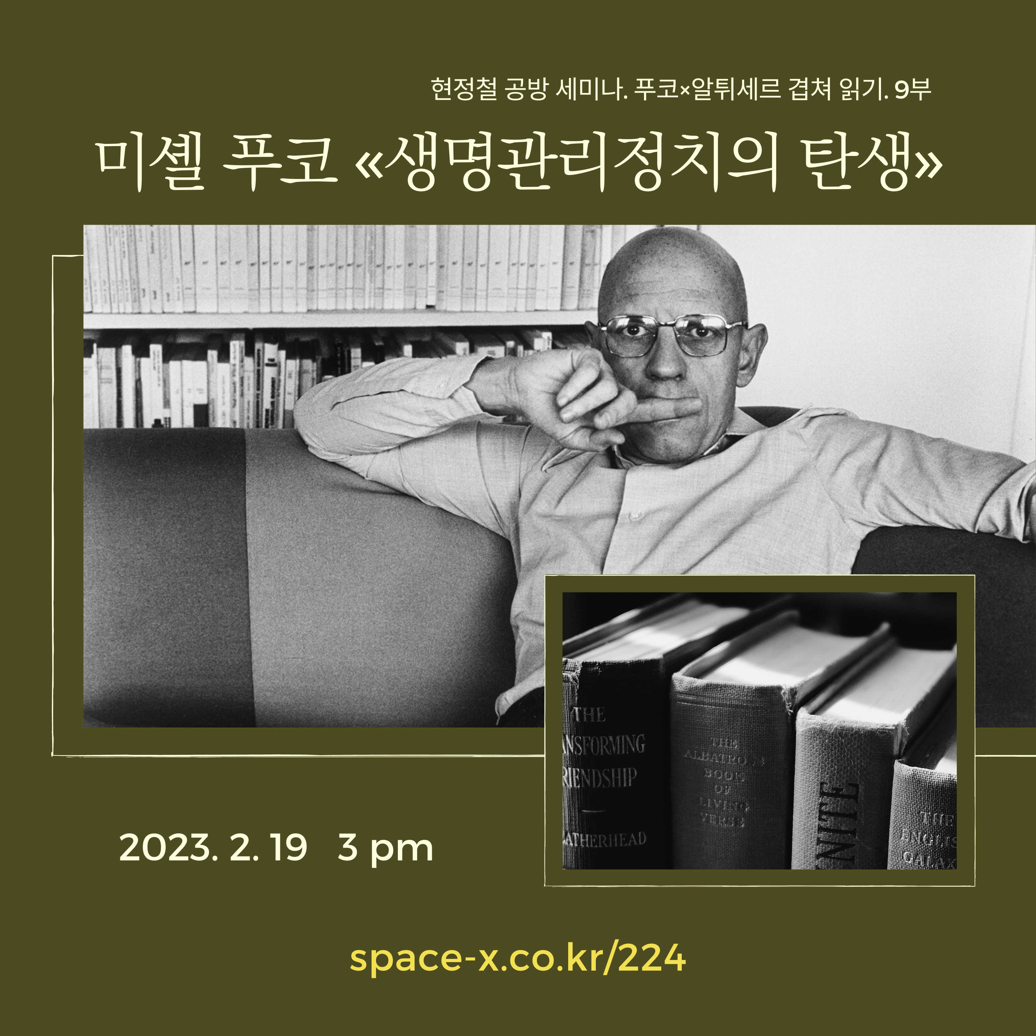 ※ 이 세미나는 미셸 푸코의 «생명관리정치의 탄생»(난장, 2012) 강의록을 매회 한 강씩 함께 읽는 자리입니다. 온라인으로 진행합니다.