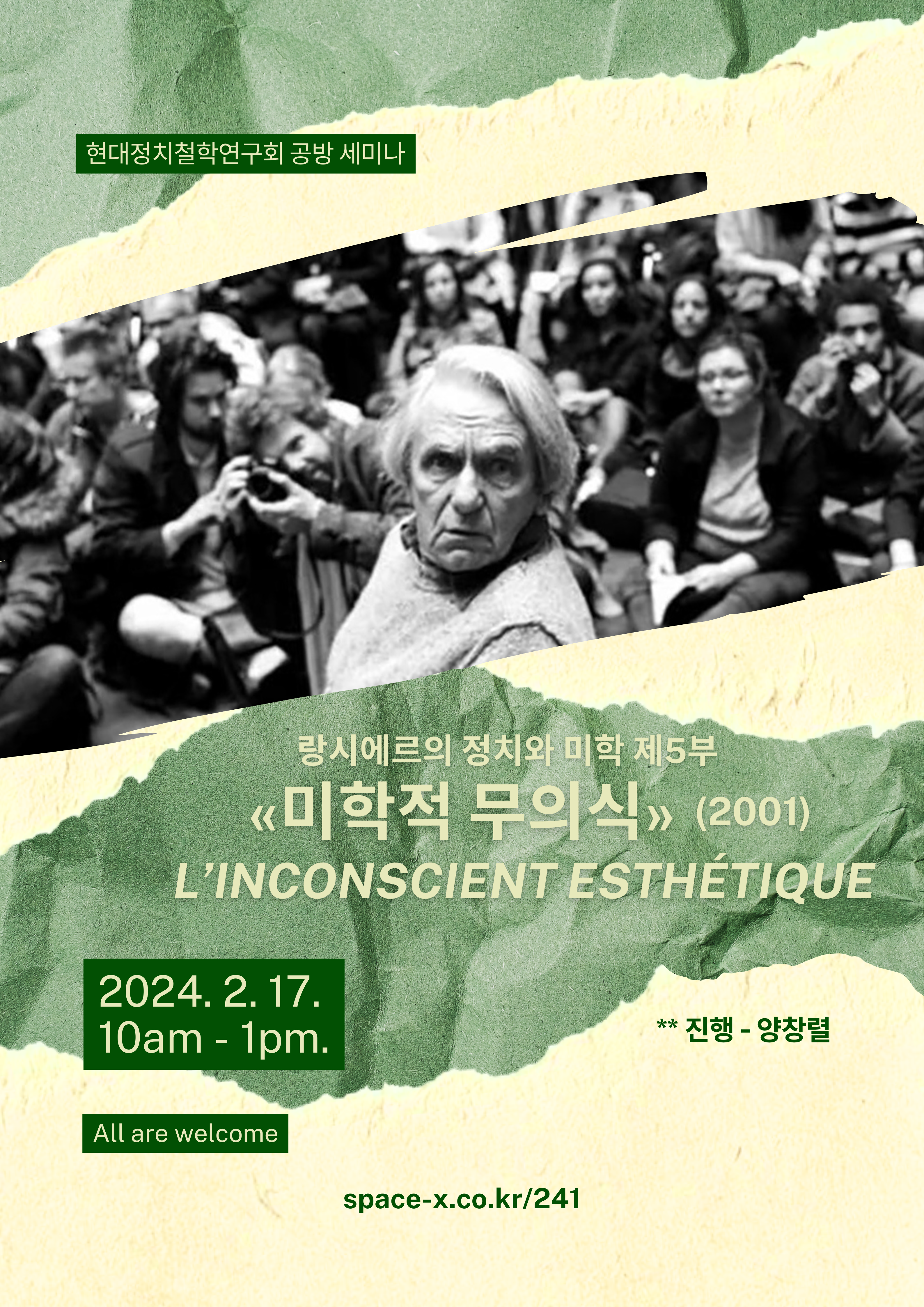 - 강독 도서 : 자크 랑시에르, «미학적 무의식» (원서 : Jacques Rancière, L’Inconscient esthétique, Galilée, 2001)