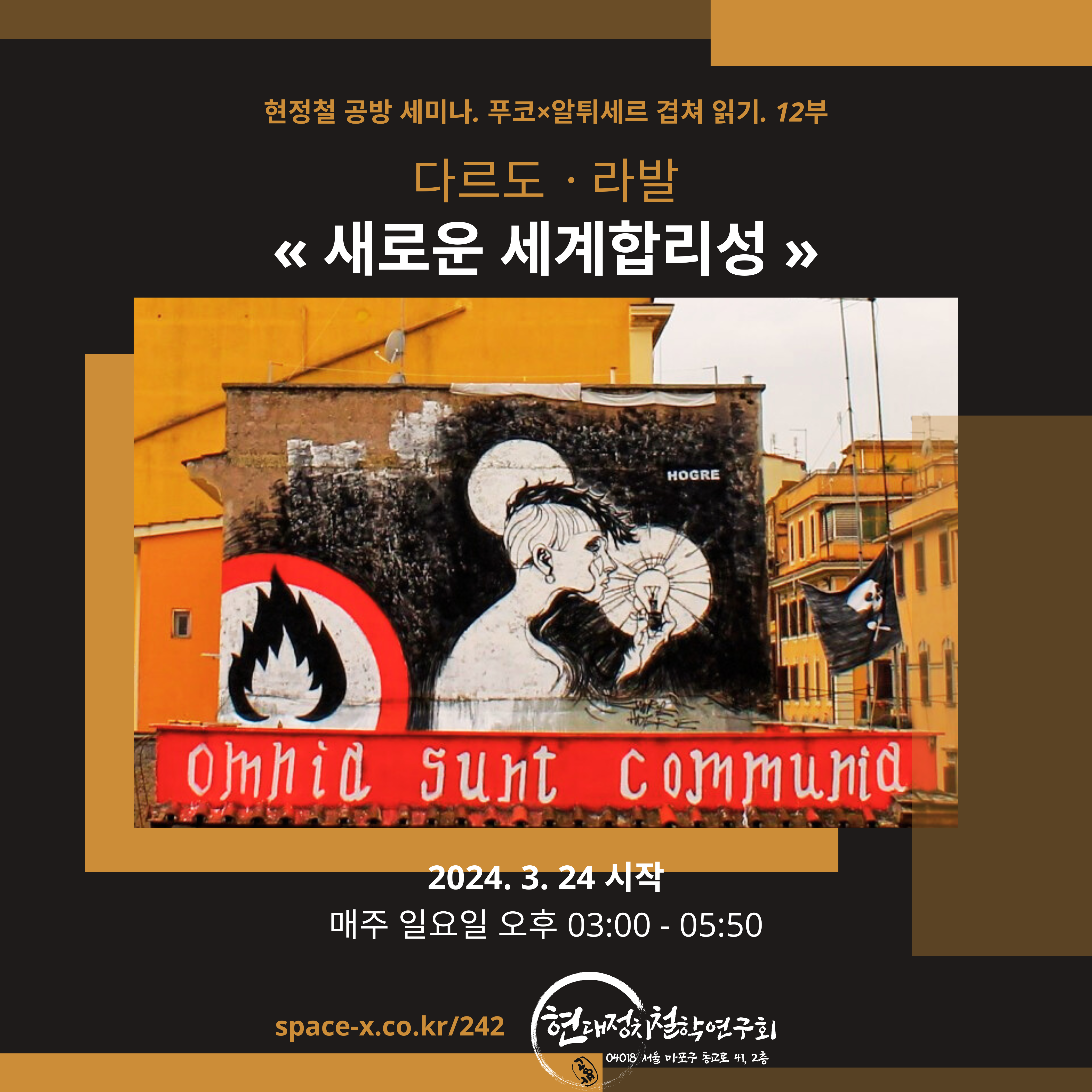 ※ 이 세미나는 다르도ㆍ라발의 « 새로운 세계합리성 » (심세광ㆍ전혜리 옮김, 그린비, 2022)을 함께 읽는 자리입니다. 온라인으로 진행합니다.