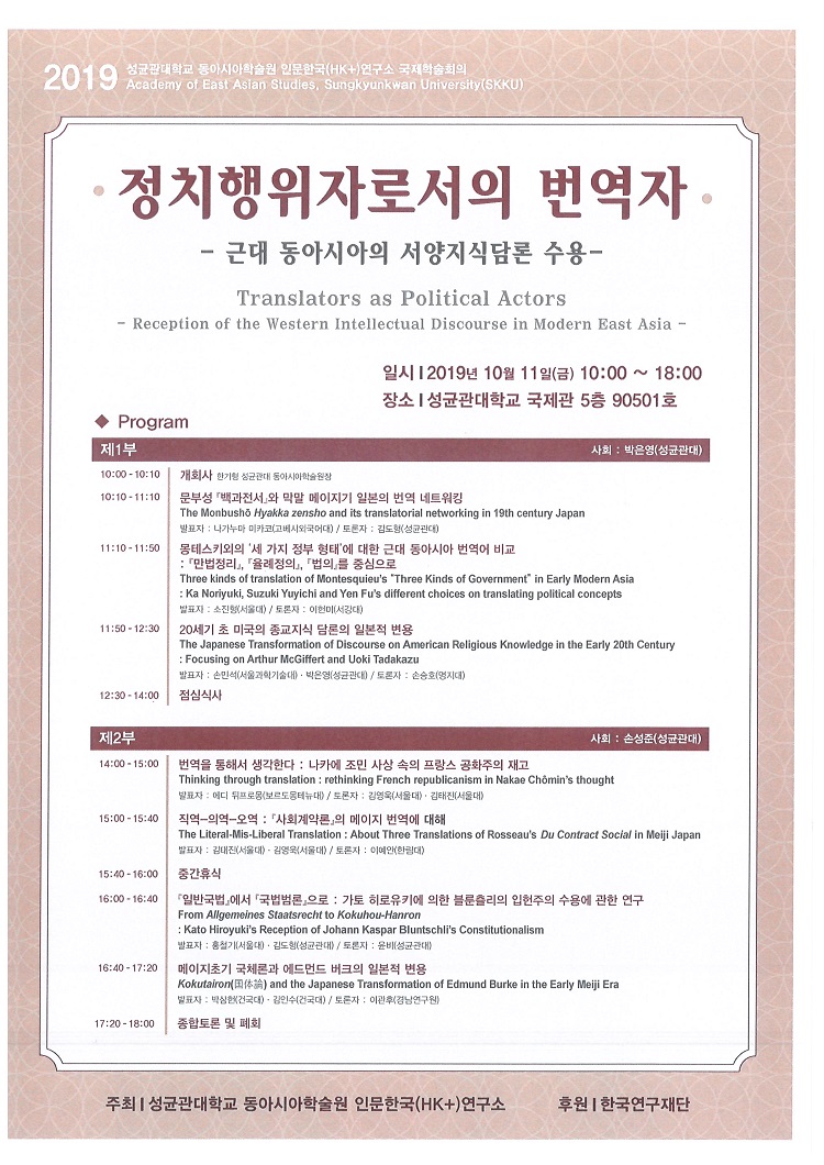 성균관대학교 동아시아학술원 인문한국(HK+)연구소에서 10월 11일(금), 10시부터 국제학술대회를 개최합니다.