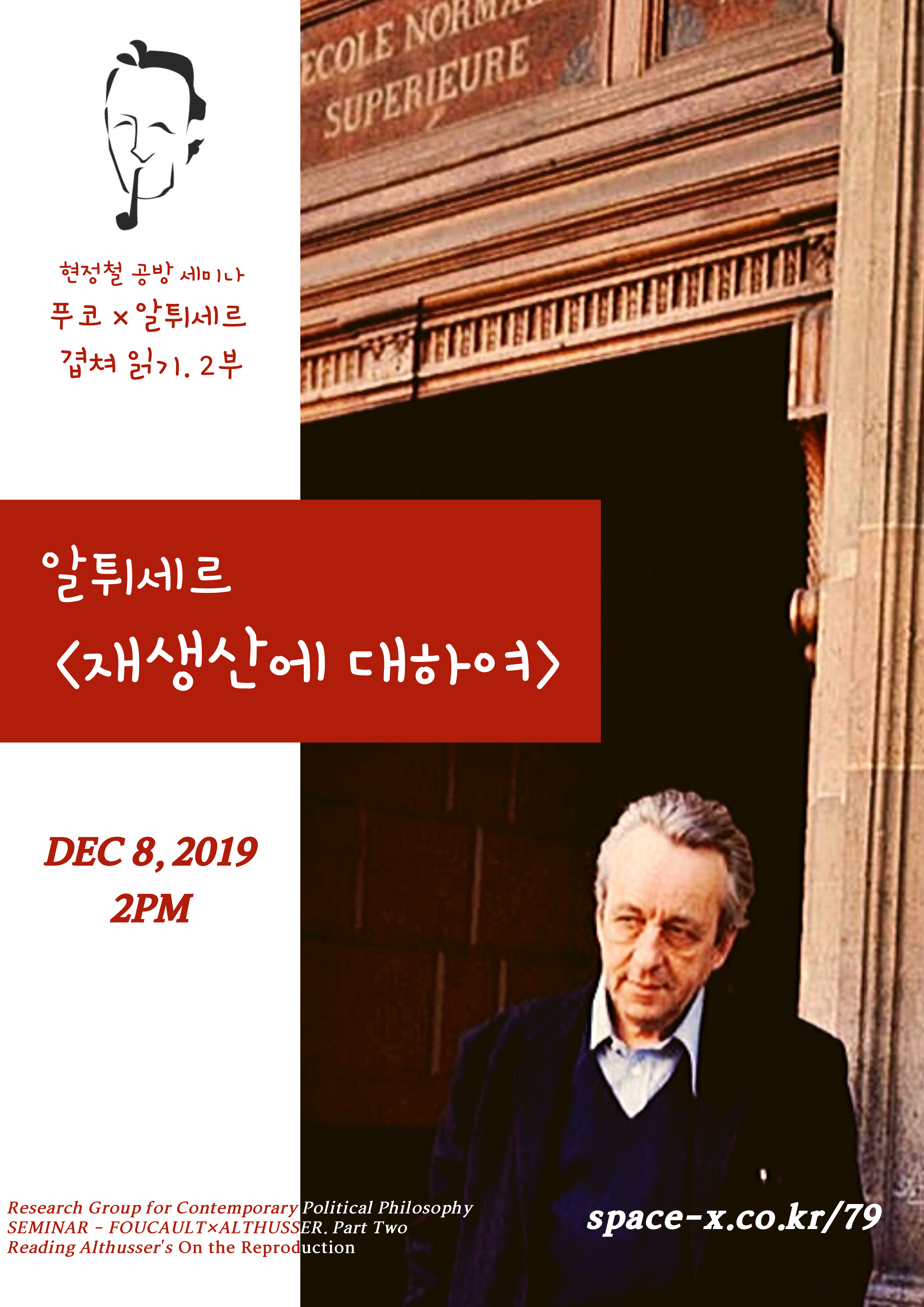지난 석달 가량 동안 푸코의 ≪감시와 처벌≫을 읽는 것을 시작 삼은 세미나 모임입니다. 앞으로는 알튀세르의 ≪재생산에 대하여≫를 읽을 계획입니다. 이후엔 ≪성의 역사 1권≫, ≪마르크스를 위하여≫, ≪"사회를 보호해야 한다"≫ 등을 계획하고 있습니다.